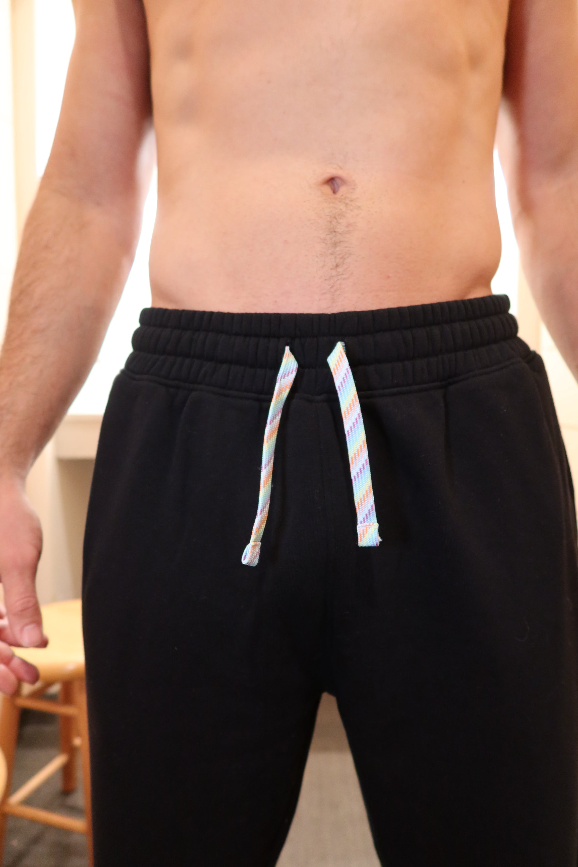 - Standout Detail: Thick, rainbow gradient braided drawcords.
